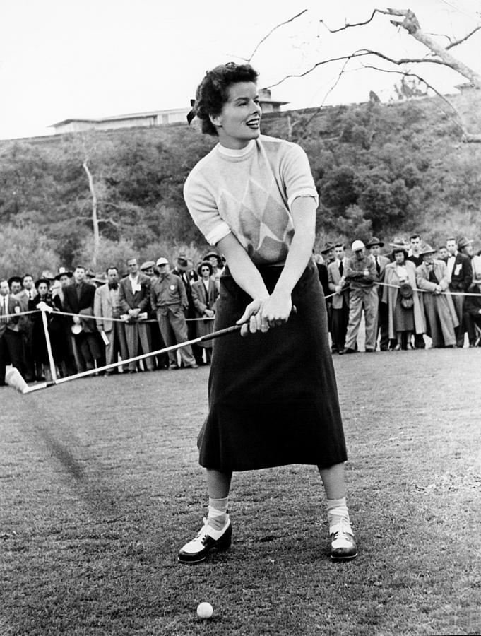 Here is Katharine Hepburn wearing an argyle sweater and matching socks on the golf course in the 1952 film, “Pat and Mike”:
