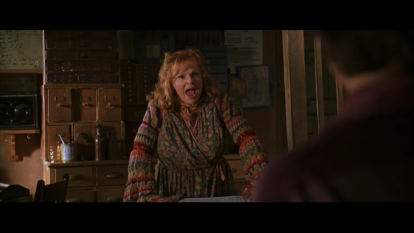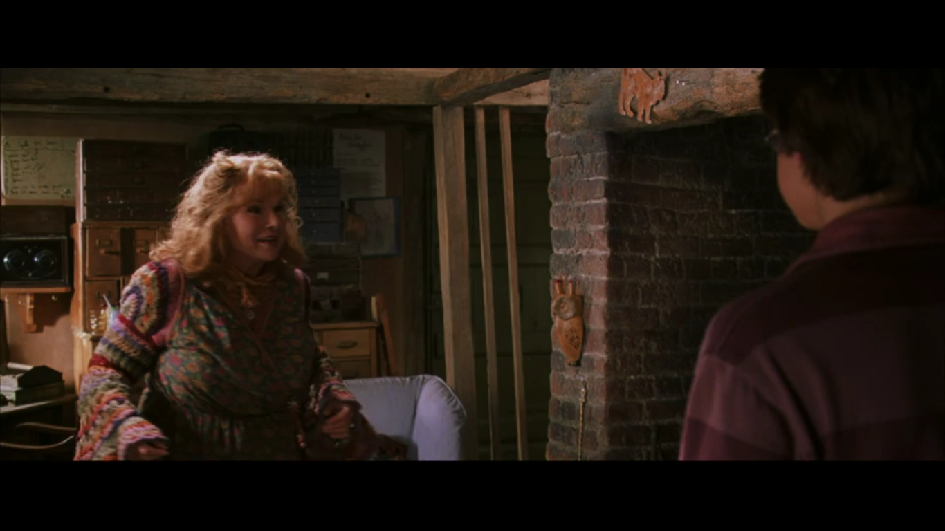 And then Molly bursts into the room to reprimand her wayward children for stealing their father’s flying car, while also politely welcoming Harry to her home. And, boy, is she is a rainbow of fiber!